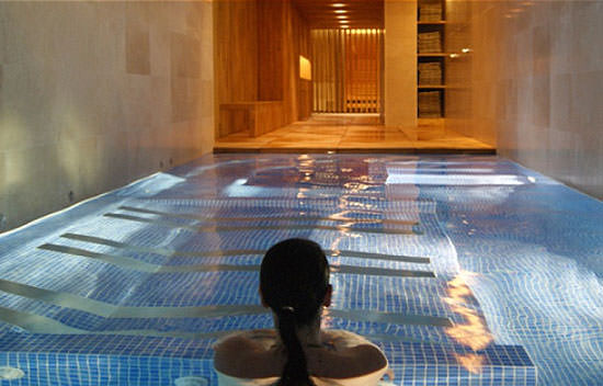 Habitaciones de diseño, todo huele a relax, un albornoz, un masaje con agua a presión, creo que estoy flotando… Una piscina al aire libre, agua caliente, no quiero salir, tengo que salir.