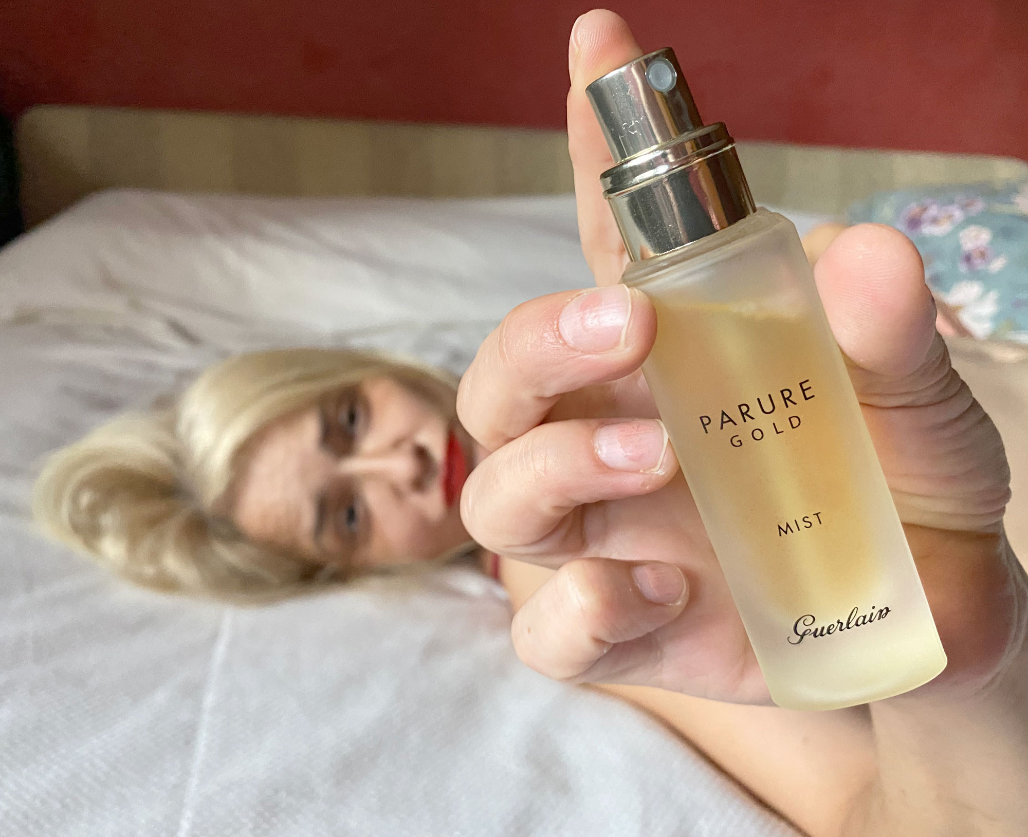 La tentación de probarlos llegó (como no) con Guerlain. No me puedo resistir a sus productos y ver allí, encima del tocador Parure Gold Mist y no probarlo, fue demasiada tentación para esta pobre cabeza.